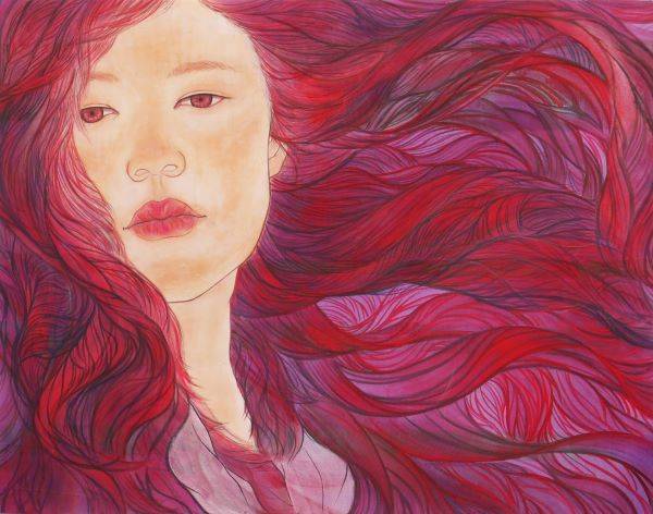 작가는 특유의 화려함과 단아함이 공존하는 채색화로 인물을 표현한다. 작품 속 인물들은 화려한 배경 속에 다양한 포즈를 취하고 있다. 하지만 하나 같이 무심한 듯한 얼굴로 시선을 던지고 있다. 고독한 듯 보이기도 하는 인물들은 마치 화려한 현대 사회에 살고 있는 사람들의 고독과 무심함을 느끼게 한다.