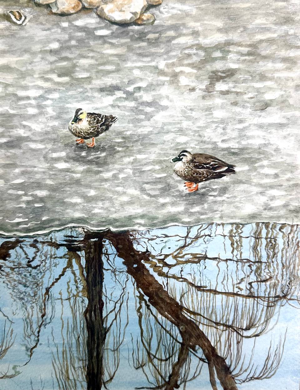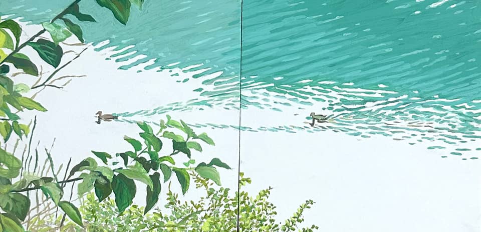 예를 들어, 물결과 윤슬, 헤엄치는 오리 등 일상에서 발견되어지는 자연의 모습들이 작업의 소재가 된다.