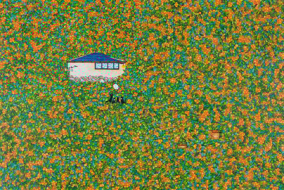 몇해 전 픽사에서 만든 애니메이션 ‘업’에서 주인공의 결혼 생활을 그려낸 오프닝 파노라마 시퀀스는 영화 역사상 가장 위대한 오프닝으로 꼽힌다. 작가의 작품들과 ‘업’과 일맥 상통하는 점은, 삶과 행복을 주제로 작품을 만들어 낸다는 점에 있다. 작가는 꽃, 풍선, 별, 달, 하늘, 집 등 단어만 떠올려도 따스함이 느껴지는 소재들을 작품 안에 자연스럽게 녹여낸다. 화려한 듯하지만 꼼꼼하고 담담하게 그린 작품들은 관객들로 하여금 마음의 안정을 느끼게 한다.