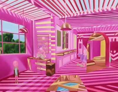 현대소비사회가 만들어낸 욕망이라는 심리적인 요인을 인형과 오브제로서 바라본다. 인형의 형상은 일상적 세계에서 의식을 일깨우고 친숙함을 벗겨내기 위한 과정이다. 그로테스크한 얼굴과 신체가 결합한 인형의 형상은 드러내지 못하는 내면을 감추고 있다. 나에게 핑크는 그저 우리가 아는 예쁜 색이 아니다. 흔히 여성적이고 장식적이라고 생각하는 색이지만, 내가 느끼는 핑크는 어릴적부터 갈망해온 색이자 성인이 되었을때 내가 갖고 싶은 마음의 색이다. 사회적 성인 젠더로 인해 선택된 색이 아닌 것이다. 그보다는 마음 속에 채우고 싶지만 다가갈수록 결핍이 일어나는 욕망의 대상의 색이다. 그 대상의 모습은 화려하고 비현실적인 욕망이 충만한 상태이며, 그렇기에 유토피아와 같은 이상적인 공간에서만 이루어질수있다. 모든 그림 속 모습은 완전한 핑크가 아니며, 오히려 공간마다 현실을 벗어나 도달하고 싶은 욕망에서만 핑크 빛 흔적들로 표현하고 있다.