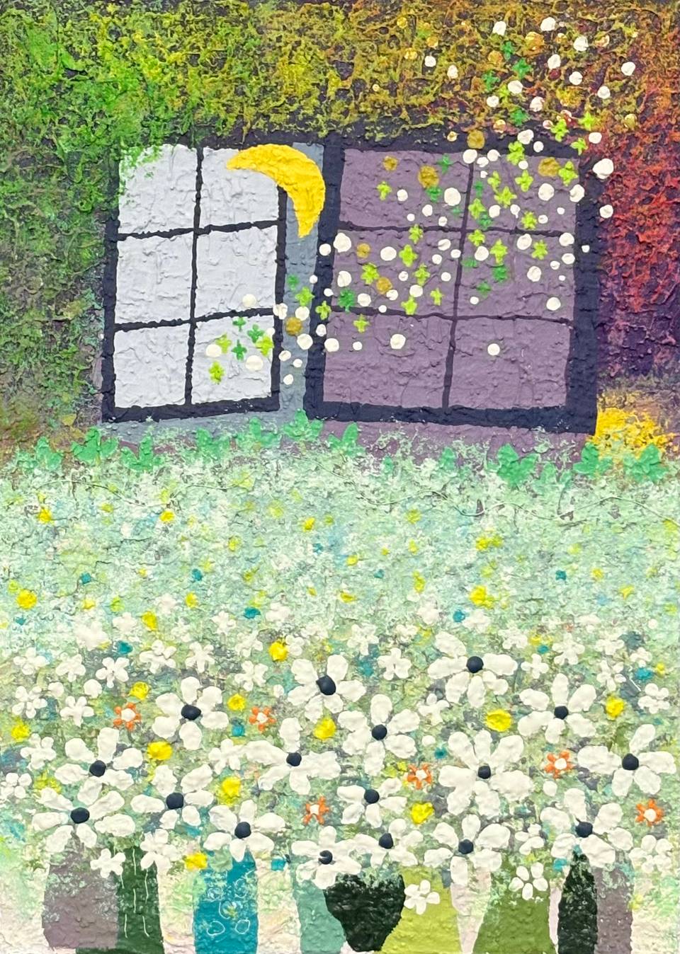 정명희 작가는 마음을 편안하게 하고 힐링을 제공하는 자연의 풍경을 그린다. 그녀의 작품은 정겹고 동화 같으며 향수를 불러일으키면서도 현대적이고 세련된 감각이 더해진다. 작품의 톤은 강렬하지 않고 부드럽고 편안하며, 작은 꽃들을 하나하나 세심하게 표현하면서도 프레임 속 광대한 풍경을 훌륭하게 담아낸다. 이러한 접근은 바쁜 일상 속에서 위안을 찾고 잠시나마 휴식을 취할 수 있는 공간을 제공한다. 정명희 작가의 그림은 자연의 조화로움과 아름다움을 부드럽게 표현하며, 관람자가 내면의 평화를 찾고 감정적 위안을 얻을 수 있는 기회를 제공한다.