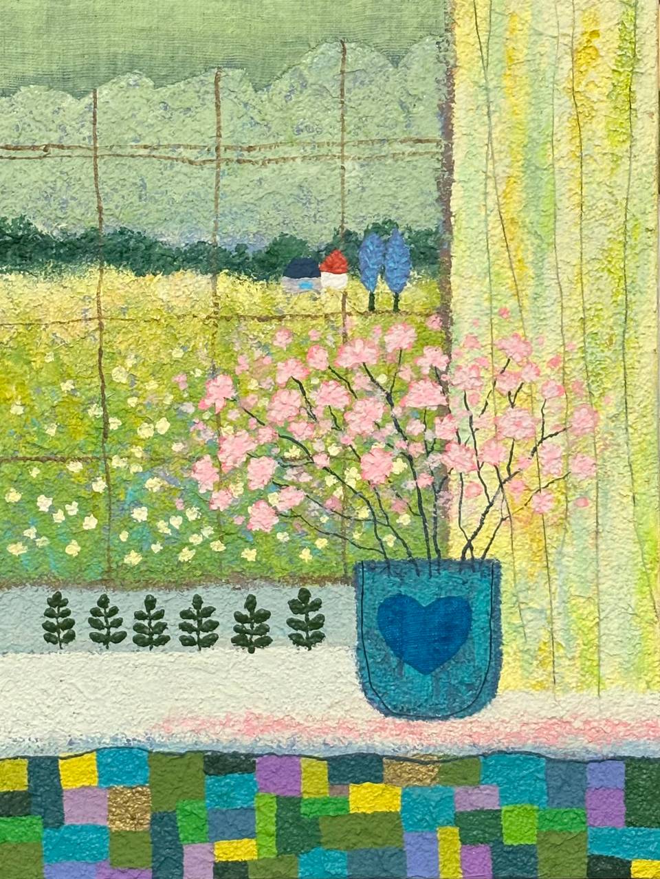 정명희 작가는 마음을 편안하게 하고 힐링을 제공하는 자연의 풍경을 그린다. 그녀의 작품은 정겹고 동화 같으며 향수를 불러일으키면서도 현대적이고 세련된 감각이 더해진다. 작품의 톤은 강렬하지 않고 부드럽고 편안하며, 작은 꽃들을 하나하나 세심하게 표현하면서도 프레임 속 광대한 풍경을 훌륭하게 담아낸다. 이러한 접근은 바쁜 일상 속에서 위안을 찾고 잠시나마 휴식을 취할 수 있는 공간을 제공한다. 정명희 작가의 그림은 자연의 조화로움과 아름다움을 부드럽게 표현하며, 관람자가 내면의 평화를 찾고 감정적 위안을 얻을 수 있는 기회를 제공한다.