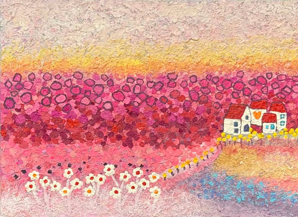 정명희 작가는 마음을 편안하게 하고 힐링을 제공하는 자연의 풍경을 그린다. 그녀의 작품은 정겹고 동화 같으며 향수를 불러일으키면서도 현대적이고 세련된 감각이 더해진다. 작품의 톤은 강렬하지 않고 부드럽고 편안하며, 작은 꽃들을 하나하나 세심하게 표현하면서도 프레임 속 광대한 풍경을 훌륭하게 담아낸다. 이러한 접근은 바쁜 일상 속에서 위안을 찾고 잠시나마 휴식을 취할 수 있는 공간을 제공한다. 정명희 작가의 그림은 자연의 조화로움과 아름다움을 부드럽게 표현하며, 관람자가 내면의 평화를 찾고 감정적 위안을 얻을 수 있는 기회를 제공한다.