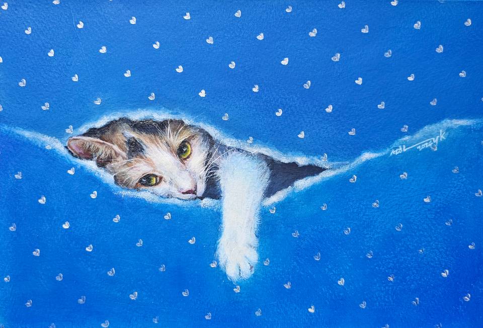 안영경 작가는 풍경화, 정물화, 동물화를 통해 다채로운 세계를 펼쳐 보인다. 그의 풍경화는 주로 계절의 변화를 담아내며, 우리의 일상에서 자연과 추억이 담긴 장소들을 세심하게 그려낸다. 정물화에서는 캔버스의 한계를 넘나들며 피사체가 화면을 넘어가거나 쪼개지는 독창적인 구성을 보여준다. 다양한 매체를 활용하여 작품에 깊이와 흥미를 더하고 있다. 동물화에서는 귀여운 고양이와 자유롭게 달리는 말을 통해, 고양이의 엉뚱한 행동으로 웃음을 주고, 광활한 야생을 달리는 말로 해방감을 선사한다. 작가는 각기 다른 주제를 통해 감정의 스펙트럼을 넓히며, 관람객에게 일상 속에서 잊기 쉬운 자연과 감정의 소중함을 새롭게 느끼게 한다.