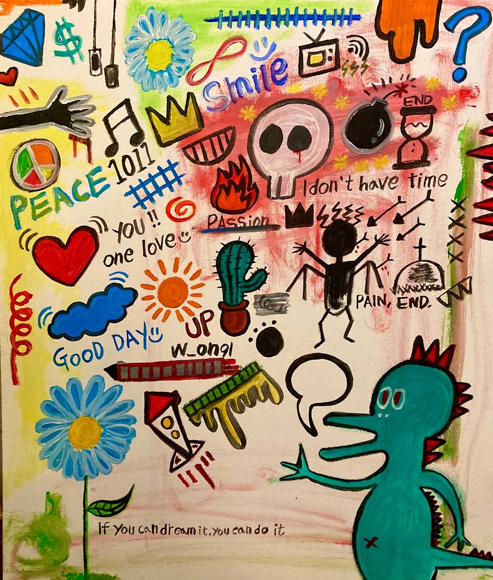 술에 취해 sns에 하나의 글을 기재하게 되었다. 한 달안에 70개의 그림을 그려 전시회를 열테니 마음에 드는 그림을 무료로 주겠다고. 다음 날, 그 글을 지우려 했지만 이미 일이 커진 상태였다. 그렇게 난 한 달안에 70개의 그림을 완성을 했으며 진짜 전시회를 열게 되었다. 그렇게 나의 그림은 많은 사람들에게 낭만이란 단어로 선물로 전해졌으며, 나는 그 후로도 매일 그림을 그리게 되었다. 난 그림을 배운 적이 없다. 그래서 난 장르가 없다. 그렇기에 난 장르에 구애받지 않는다. 내가 곧 장르며, 난 캔버스위에 자유로운 영혼이다.