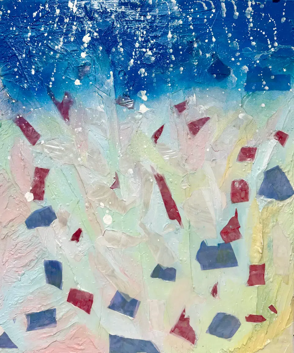 그림 자체에 큰 애정을 지녔던 시기였습니다. 바다에서의 감흥을 담기 위해 직접적인 오브제인 모래를 붙여서 표현한 작품입니다. 삶의 생기를 생생히 느끼고 싶었고, 스스로의 한계를 도전해 본 나날들이었습니다.