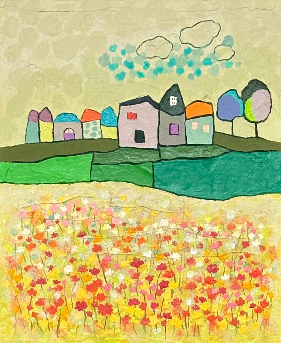 정명희 작가는 마음을 편안하게 하고 힐링을 제공하는 자연의 풍경을 그린다. 그녀의 작품은 정겹고 동화 같으며 향수를 불러일으키면서도 현대적이고 세련된 감각이 더해진다. 작품의 톤은 강렬하지 않고 부드럽고 편안하며, 작은 꽃들을 하나하나 세심하게 표현하면서도 프레임 속 광대한 풍경을 훌륭하게 담아낸다. 이러한 접근은 바쁜 일상 속에서 위안을 찾고 잠시나마 휴식을 취할 수 있는 공간을 제공한다. 정명희 작가의 그림은 자연의 조화로움과 아름다움을 부드럽게 표현하며, 관람자가 내면의 평화를 찾고 감정적 위안을 얻을 수 있는 기회를 제공한다.