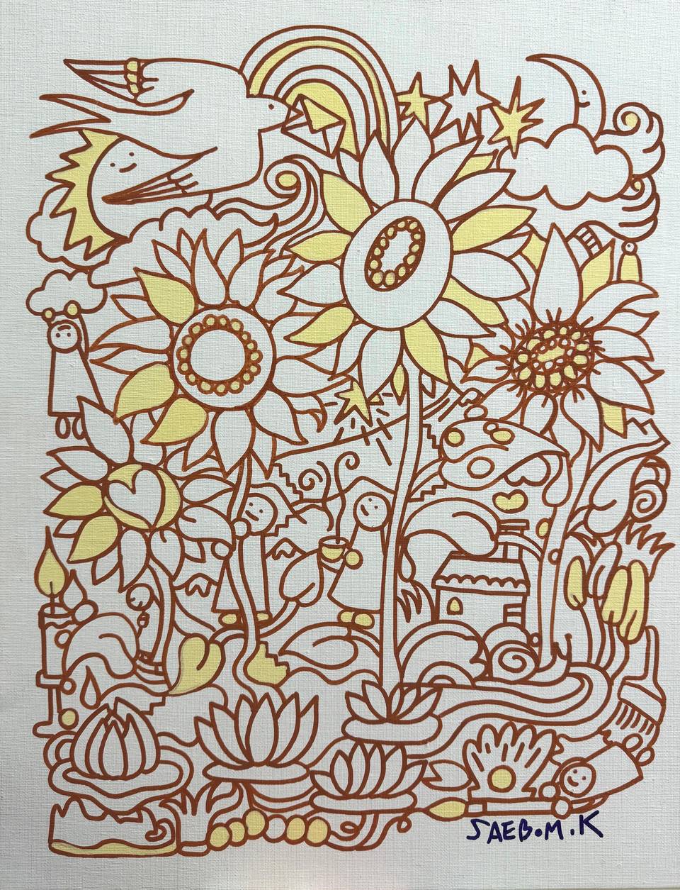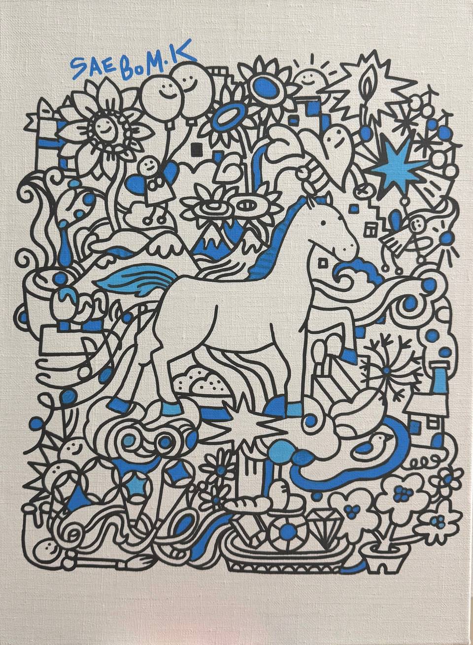 처음 작가의 작업 현장을 직접 보았을 때, 큰 캔버스 앞에 선 그녀는 작아 보였다. 하지만 거침없이 상상력을 발휘하며 밑그림 없이 그림을 그리는 모습에 한참을 압도 되었다. 오직 선과 선을 이어가며 작가의 세계를 표현한다. 언뜻 보면 키스 해링의 멋진 낙서같은 재치와 유머가 넘치다가도 사랑스러움에 미소가 절로 머금어 진다. 낙서화의 형식을 빌려 회화적으로 풀어낸 작가의 작품에서 우리는 그림속에 숨은 이야기들을 자유롭게 연결하며 자신만의 판타지를 만들어 낼 수도 있다.
