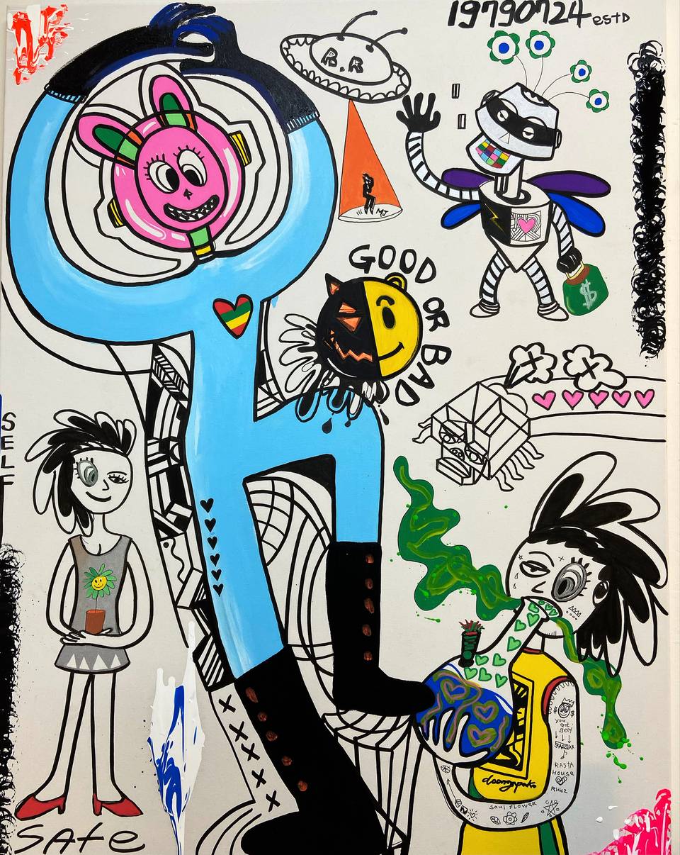 형형색색의 그림 속의 인물들은 작가가 음악작업을 하면서 만나고 스쳐지나간 사람들뿐만 아니라 음악적 거장들을 모티브로 하거나, 작가 자신이 느끼는 자화상을 표현했다. 이성에 의한 일체의 통제 없이 그려지는 그의 판타지아는 아프리카 원시 미술, 장 미셸 바스키아와 장 뒤뷔페의 영향이 묻어난다. 특히 그림마다 특유의 유쾌함과 자유분방함이 넘쳐나 그만의 독특한 작품 세계를 엿볼 수 있다.
