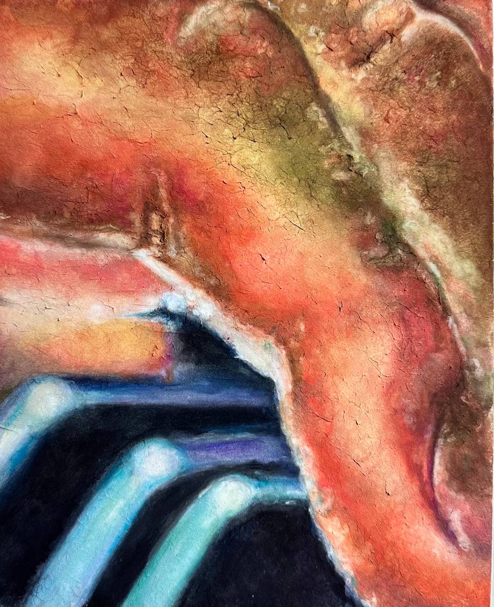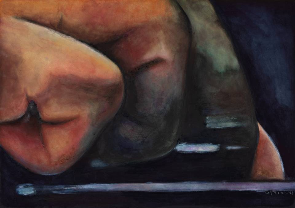 박지수 작가의 작업은 동양화의 재료와 기법을 바탕으로 하지만, 전통적 형식이나 관습적 정서에 머무르지 않는다. 화면에는 극도로 클로즈업된 인물과 신체, 손과 얼굴, 악기의 일부가 등장하며, 이는 인생을 하나의 오케스트라로 바라보는 작가의 시선과 맞닿아 있다. 서로 다른 음색을 지닌 존재들이 각자의 자리에서 살아가는 순간들을 포착한 이 작업에서, 섬세한 필치와 사실적인 묘사는 삶의 감각과 정서를 밀도 있게 끌어올린다.