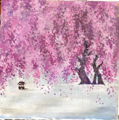 보라색 계열의 꽃들이 초록빛 잎 사이에서 군집을 이루는 풍경을 그린 작품입니다. 반복되는 붓터치와 색의 중첩을 통해 꽃과 잎의 밀도를 형성하고, 전경에서 후경으로 자연스럽게 이어지는 색의 변화로 공간감을 표현했습니다. 차분한 보라색과 생기 있는 녹색의 대비가 화면에 리듬을 부여하며, 자연이 가진 생명력과 계절의 흐름을 안정감 있게 담아냅니다.