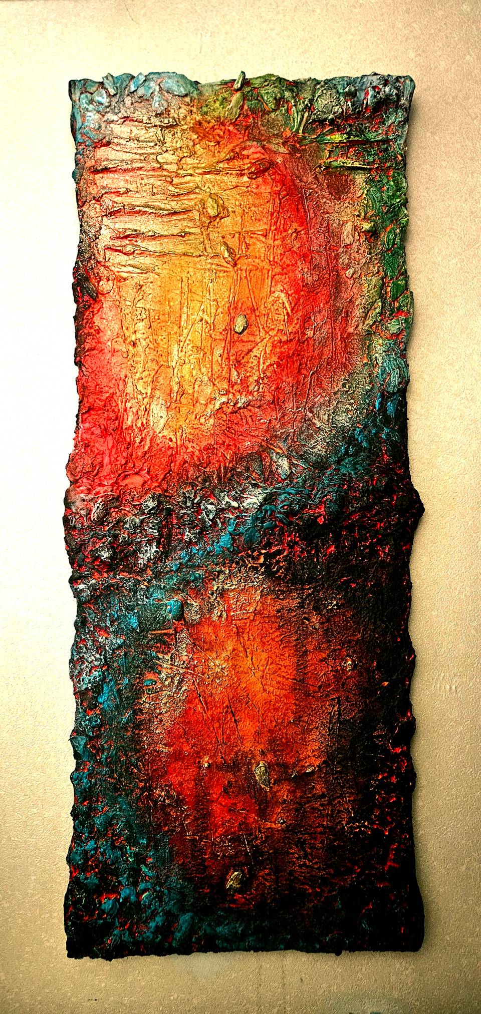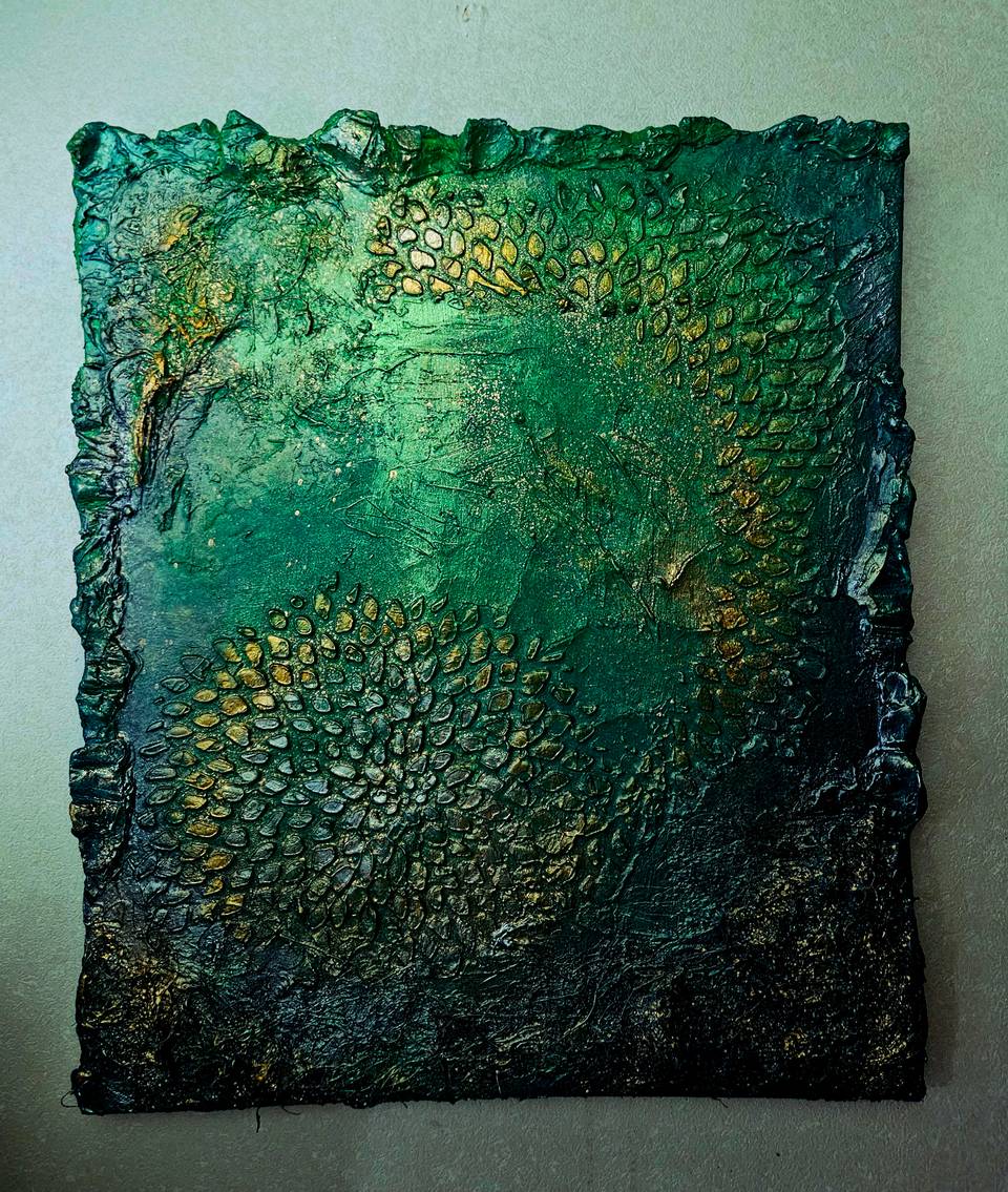 조엔 작가는 여러 매체를 사용하는데, 그중에서도 주로 Fluid Art의 Dutch Pour 기법을 적용하여 환상적이고 팽창적인 에너지를 전달한다. 이 기법은 다양한 색상의 조합을 활용하여 강렬한 시각적 효과를 만들며, 드라이기를 도구로 사용해 바람의 세기, 방향, 물감을 붓는 순서 등 여러 변수를 조절한다. Dutch Pour 기법은 많은 변수가 있어 리스크가 크기 때문에, 작업을 할 때마다 작가에게 설렘과 두려움을 동시에 안겨준다. 이러한 감정은 도전적이고 중독적인 '끌림'으로 이어져, 매번 새로운 시도를 하게 만든다. 예측불가하고 수정불가한 '단 한 번의 우연성'을 '최고의 순간'으로 포착하려는 작업은 치명적인 매력을 지닌다. 때로는 아크릴화와 Fluid Art를 접목시켜 구체적인 형태를 만들어내며, 작품은 에너지 넘치고 와일드한 느낌을 전달한다.