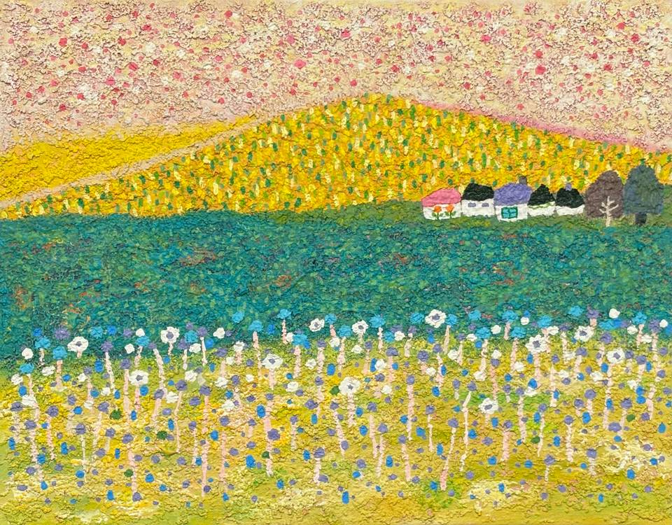 정명희 작가는 마음을 편안하게 하고 힐링을 제공하는 자연의 풍경을 그린다. 그녀의 작품은 정겹고 동화 같으며 향수를 불러일으키면서도 현대적이고 세련된 감각이 더해진다. 작품의 톤은 강렬하지 않고 부드럽고 편안하며, 작은 꽃들을 하나하나 세심하게 표현하면서도 프레임 속 광대한 풍경을 훌륭하게 담아낸다. 이러한 접근은 바쁜 일상 속에서 위안을 찾고 잠시나마 휴식을 취할 수 있는 공간을 제공한다. 정명희 작가의 그림은 자연의 조화로움과 아름다움을 부드럽게 표현하며, 관람자가 내면의 평화를 찾고 감정적 위안을 얻을 수 있는 기회를 제공한다.