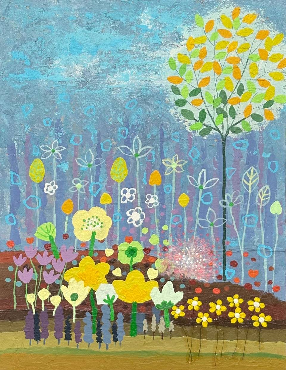 정명희 작가는 마음을 편안하게 하고 힐링을 제공하는 자연의 풍경을 그린다. 그녀의 작품은 정겹고 동화 같으며 향수를 불러일으키면서도 현대적이고 세련된 감각이 더해진다. 작품의 톤은 강렬하지 않고 부드럽고 편안하며, 작은 꽃들을 하나하나 세심하게 표현하면서도 프레임 속 광대한 풍경을 훌륭하게 담아낸다. 이러한 접근은 바쁜 일상 속에서 위안을 찾고 잠시나마 휴식을 취할 수 있는 공간을 제공한다. 정명희 작가의 그림은 자연의 조화로움과 아름다움을 부드럽게 표현하며, 관람자가 내면의 평화를 찾고 감정적 위안을 얻을 수 있는 기회를 제공한다.